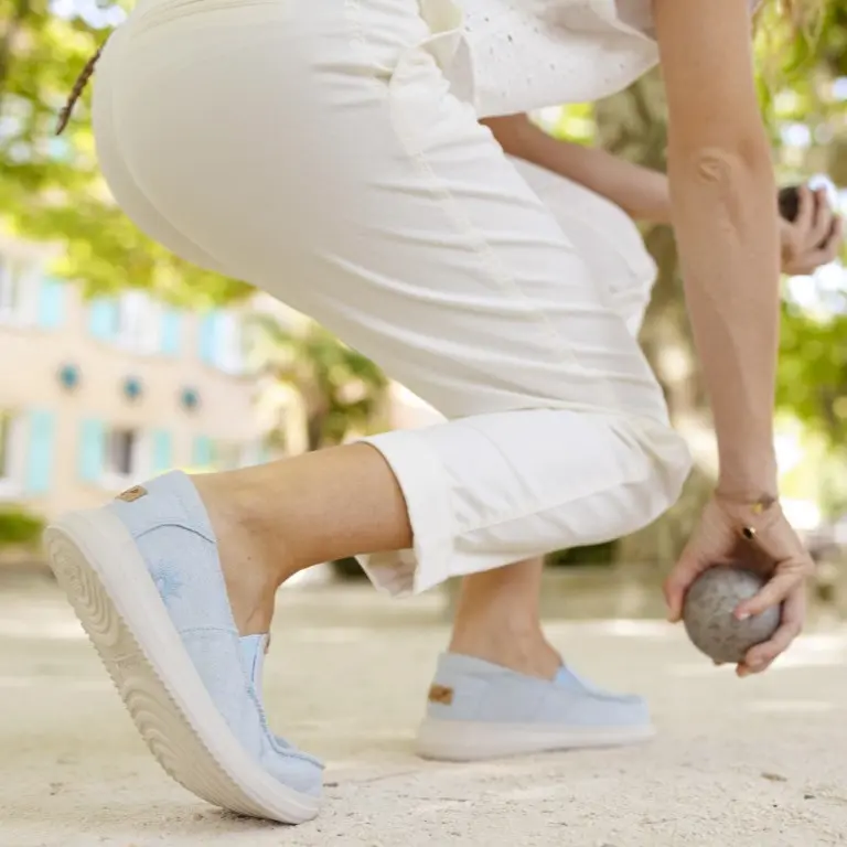 - Une chaussure pensée pour les aficionados de balades et d’apéros entre amis, pour les gourmands de la vie, pour les experts du farniente et des siestes ombragées.